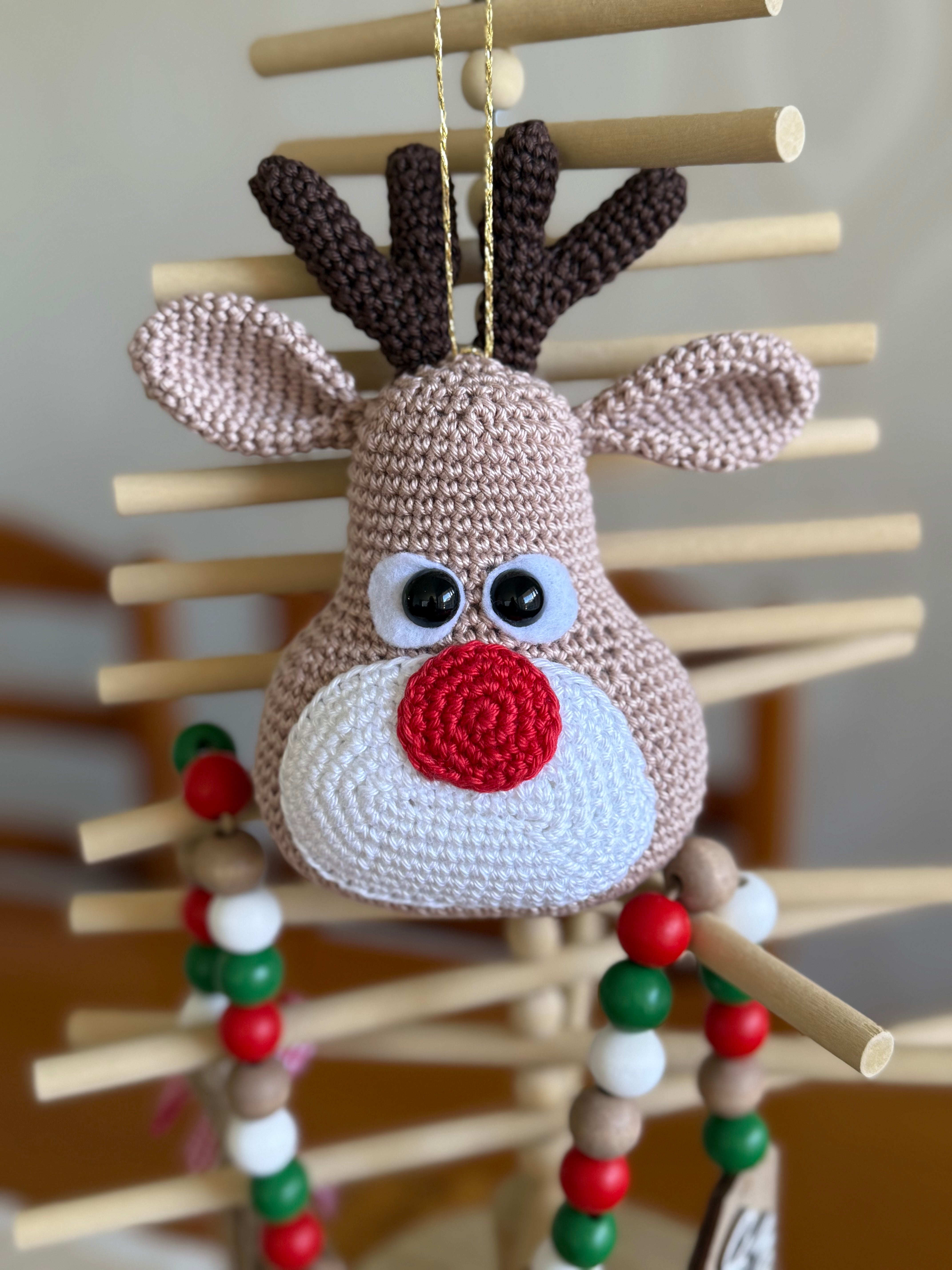 Made in cotton yarn our Christmas reindeer decoration measures 16 cm x 10 cm
